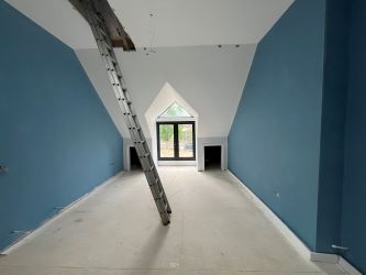 A nearly complete development with implemented planning permission for a 4 bedroom, detached, contemporary chalet style home. Approximately a third of an acre situated in an established residential locality on the edge of the village. Holdfast, is located on the eastern fringe of the village on The Ridgeway, within a short walk of wooded countryside and level walk to the High Street. The area is made up of mainly detached properties on generous plots. Detailed planning permission has been implemented for the construction of a detached chalet style home, extending to approximately 2,300 sq. ft. with the accommodation comprising four bedrooms all with en-suite facilities, open plan sitting/dining room, kitchen and utility room, plus a single attached garage.